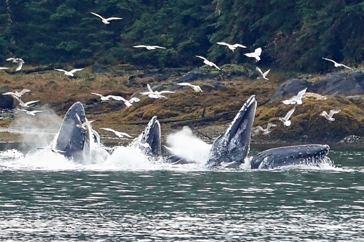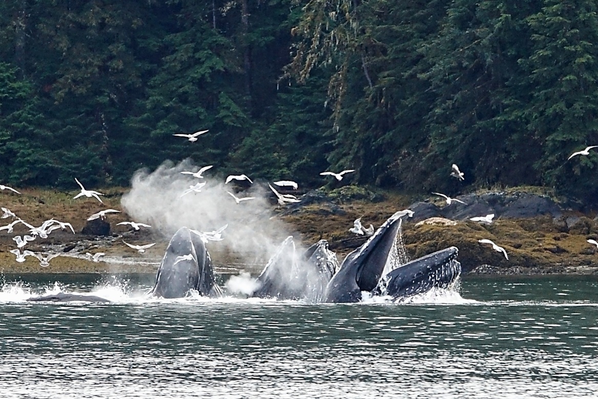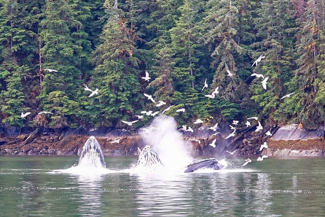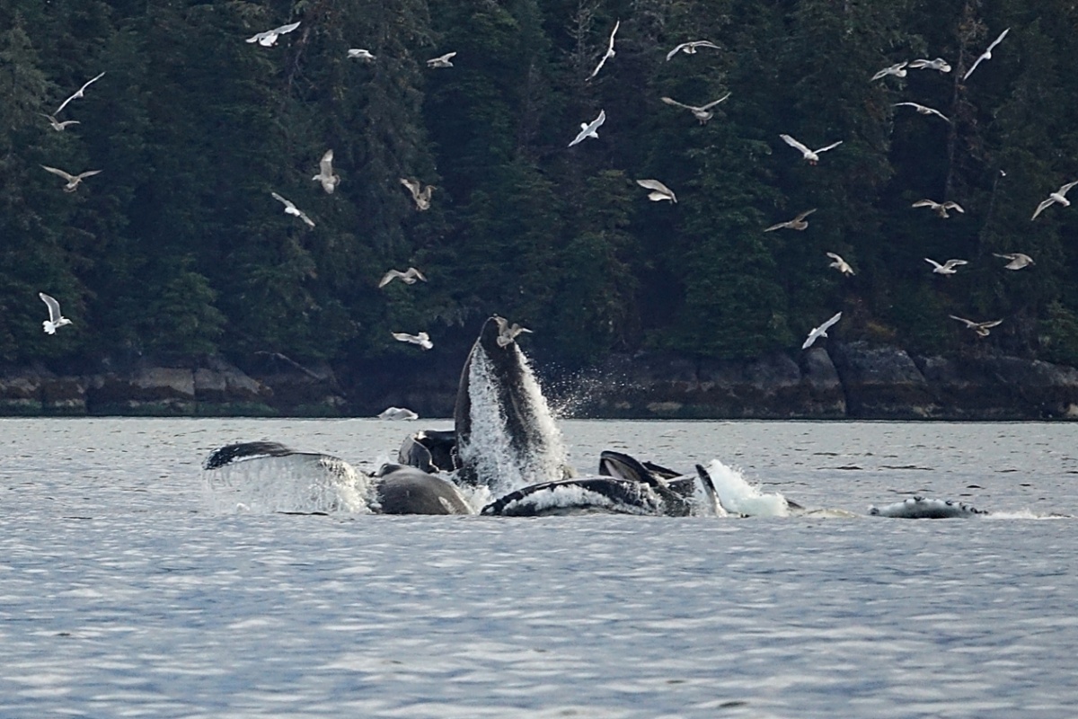 Pozorovat velryby je úžasný zážitek, obzvlášť když poprvé v životě sleduji jejich styl lovu, kdy se vynořují s otevřenou tlamou, do které nabírají desítky kilogramů ryb.