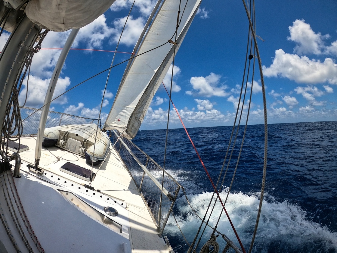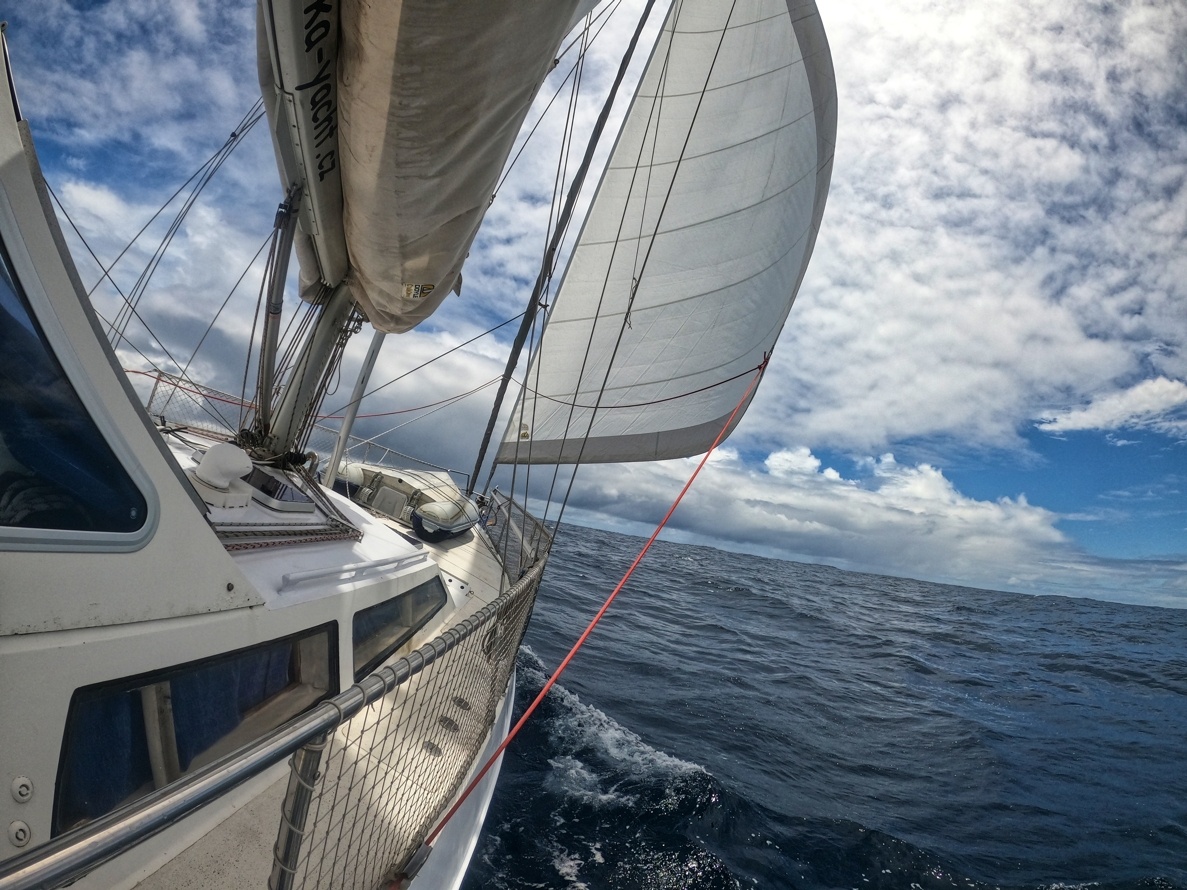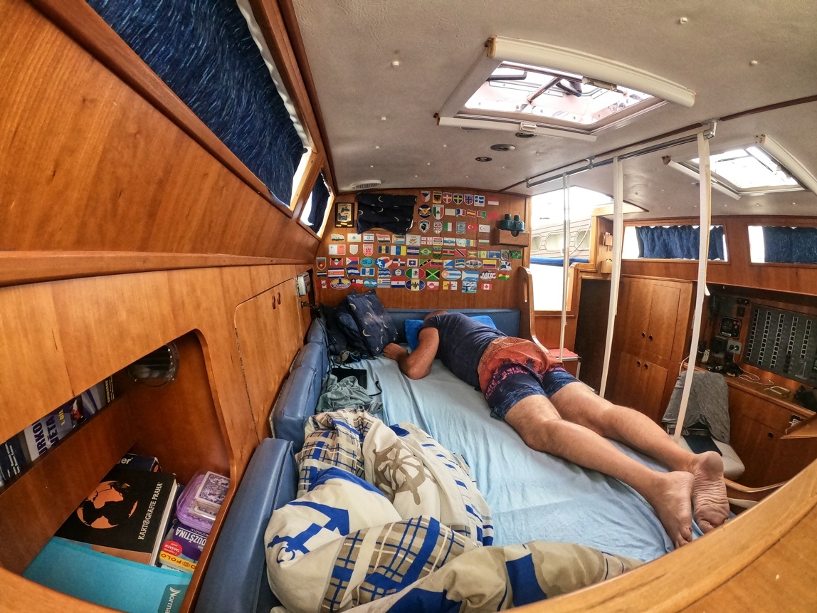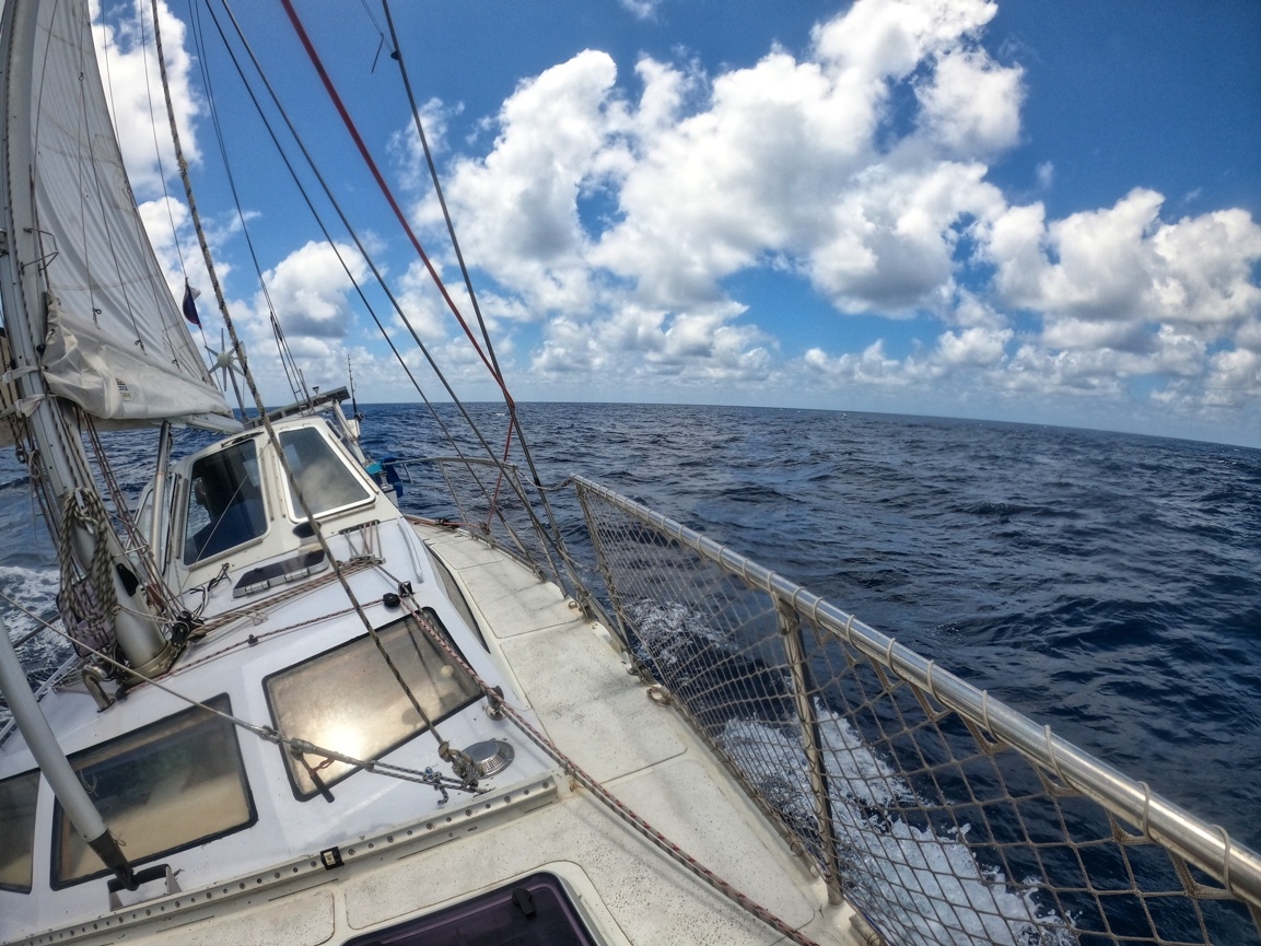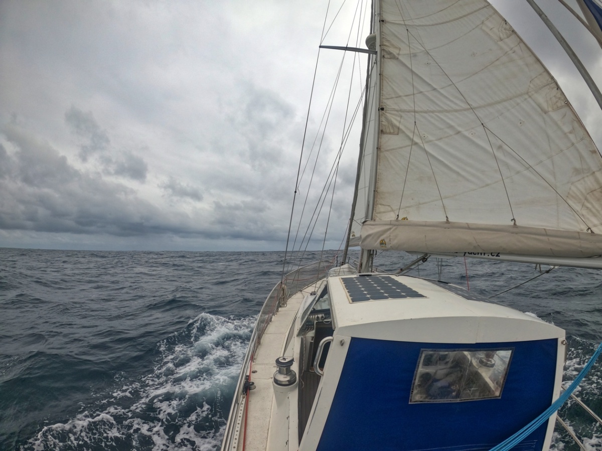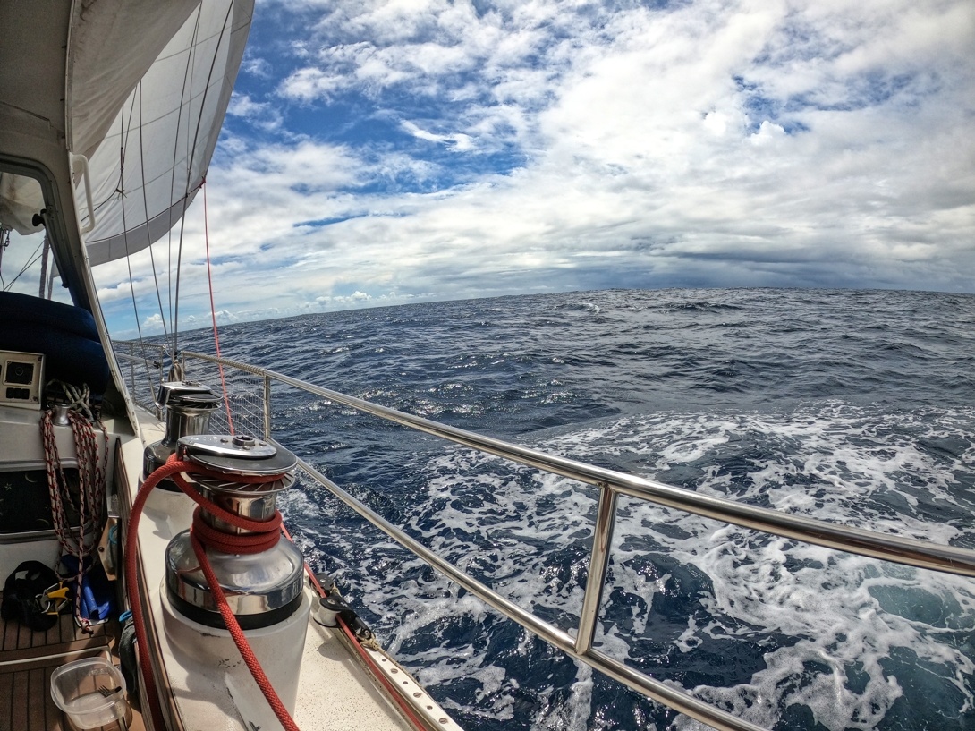 2. dubna vyplouvám z Cabo San Lucas v Mexiku a mám před sebou Pacifický oceán v délce asi 2600 mil. První 3 dny mám ideální lehký vítr z boku, který se pak točí na zadní, který je nepříjemný kvůli houpání lodě. Ale stále postupuji rychle kupředu. Nad rovníkem je velká konvergační zóna s častými dešti a malým nebo žádným větrem. Tady musím 3 dny motorovat směrem k rovníku. Ten překročím 17. dubna a pak již mě čeká suprový předoboční vítr až na Markézy. Celkem jsem za 19 dnů uplul 2800 mil a byla to zatím moje nejdelší sólová přeplavba oceánu. Děkuji Neptune za tvojí přízeň.