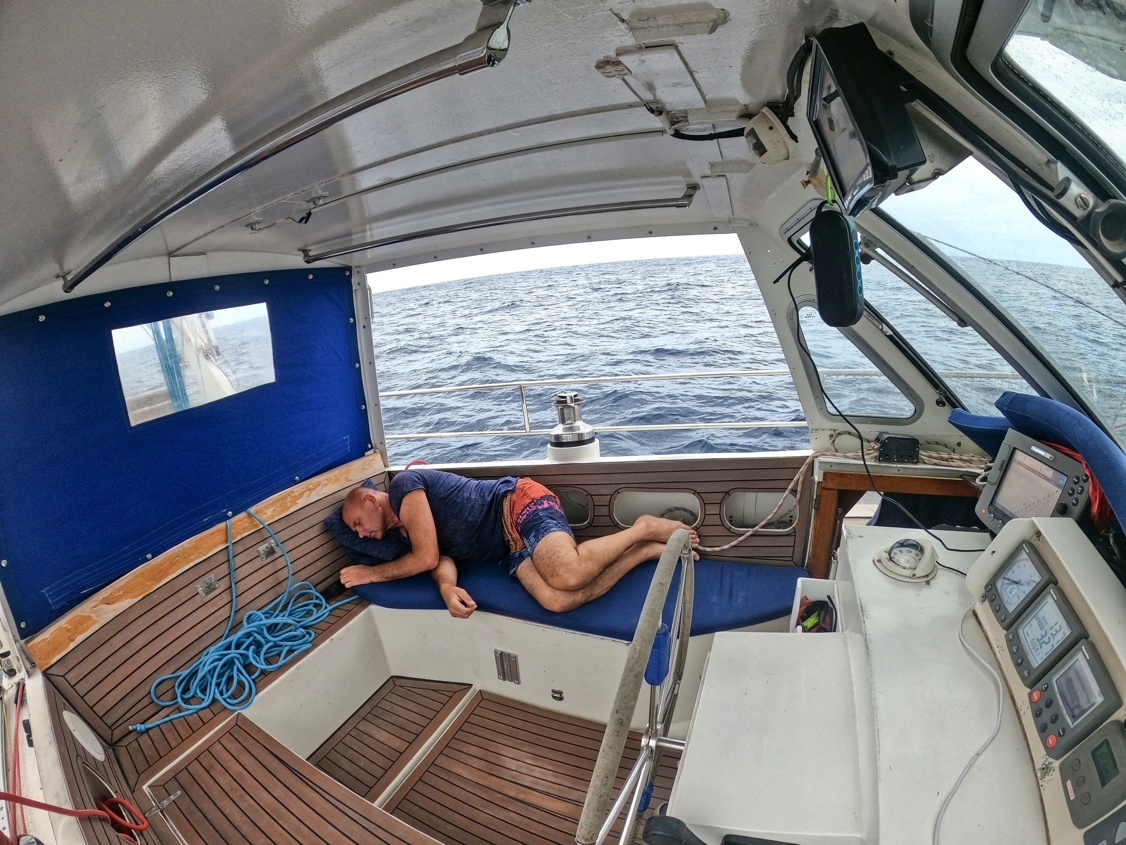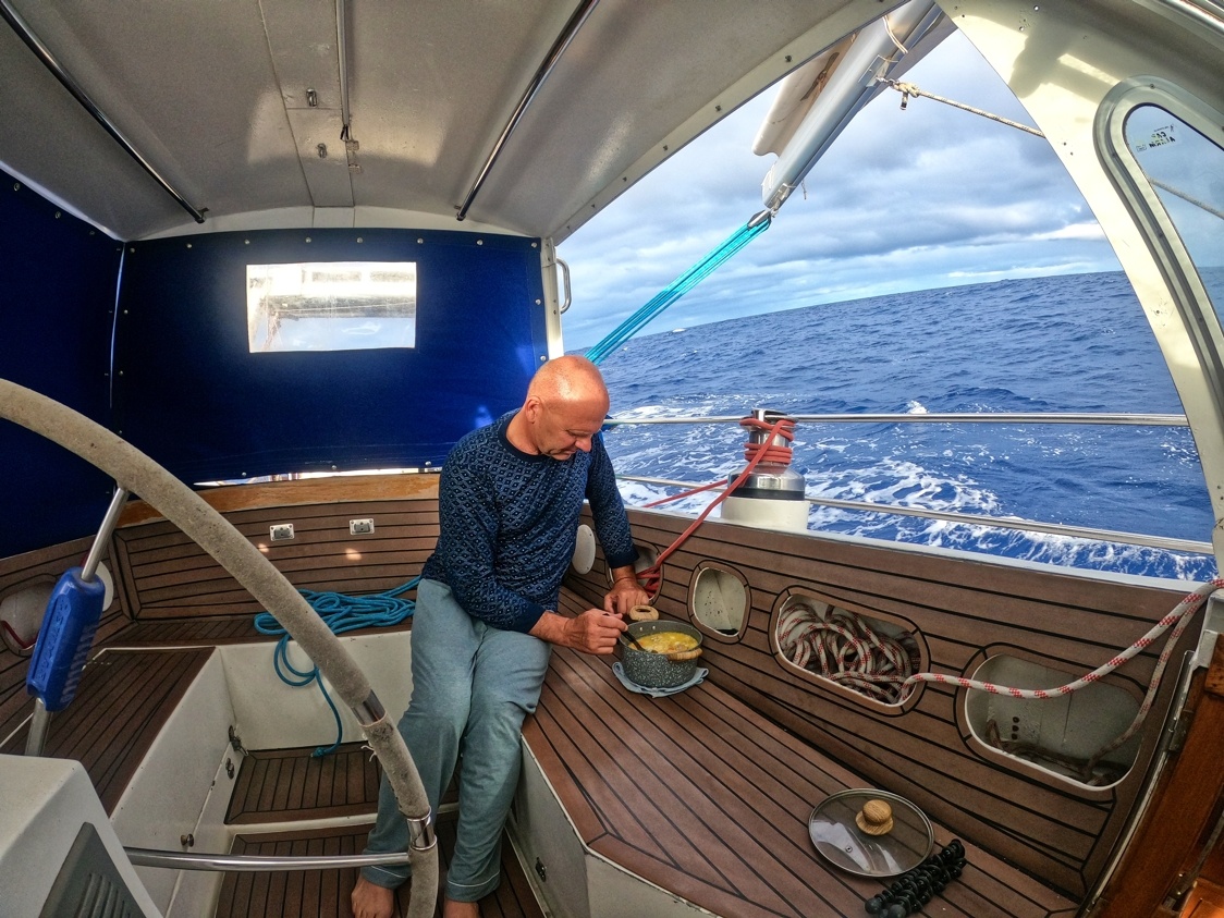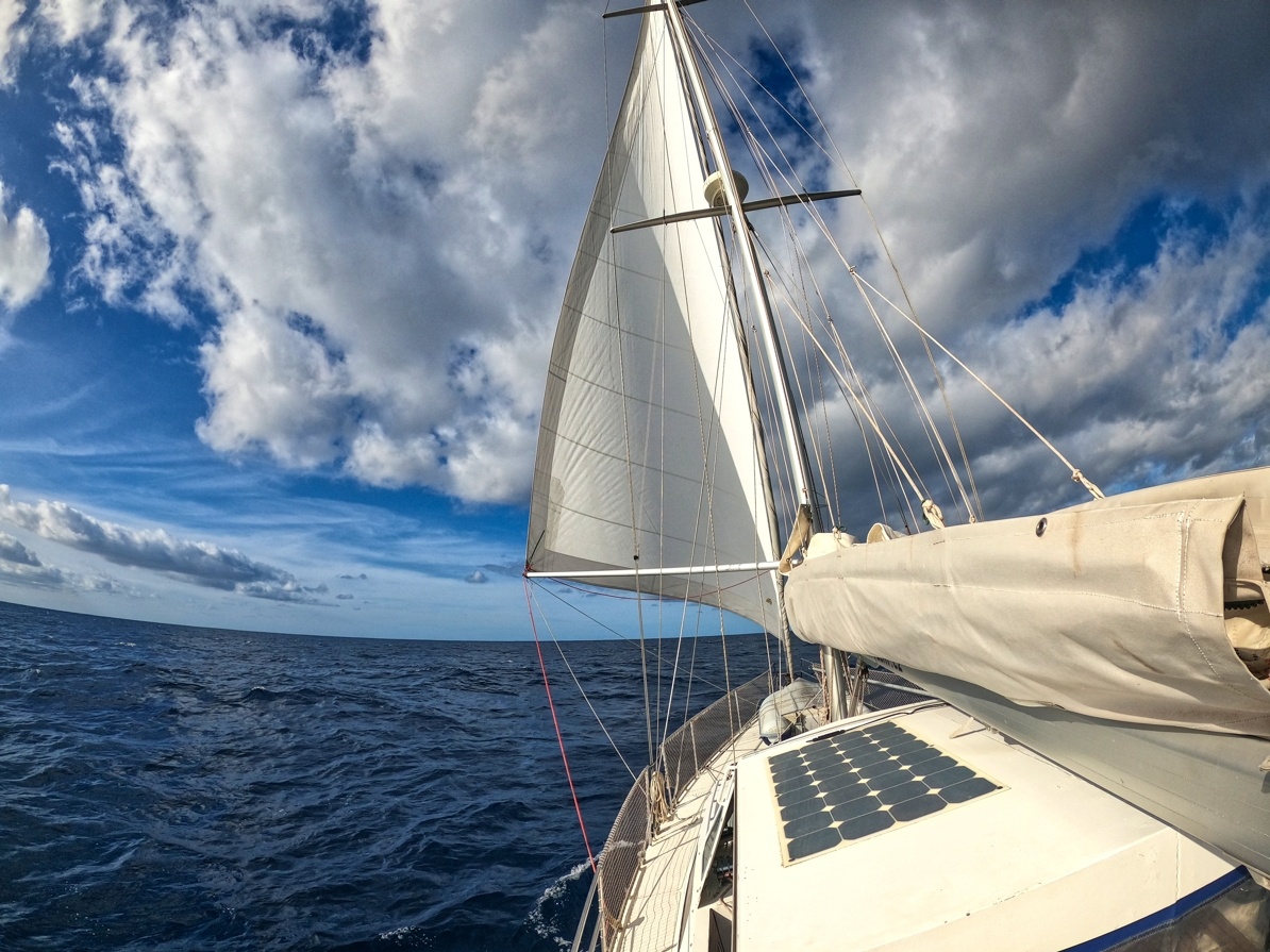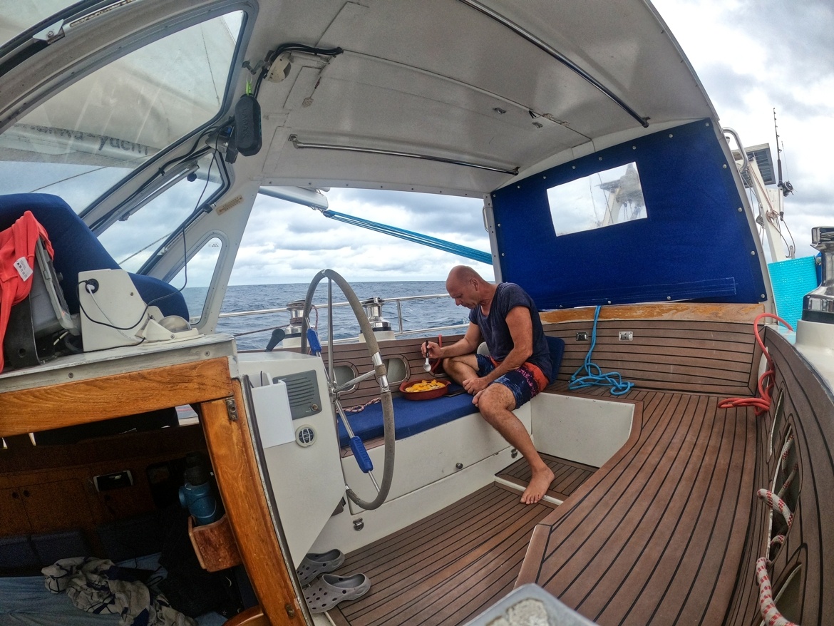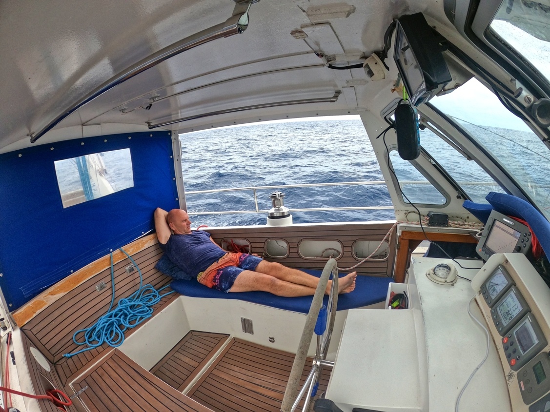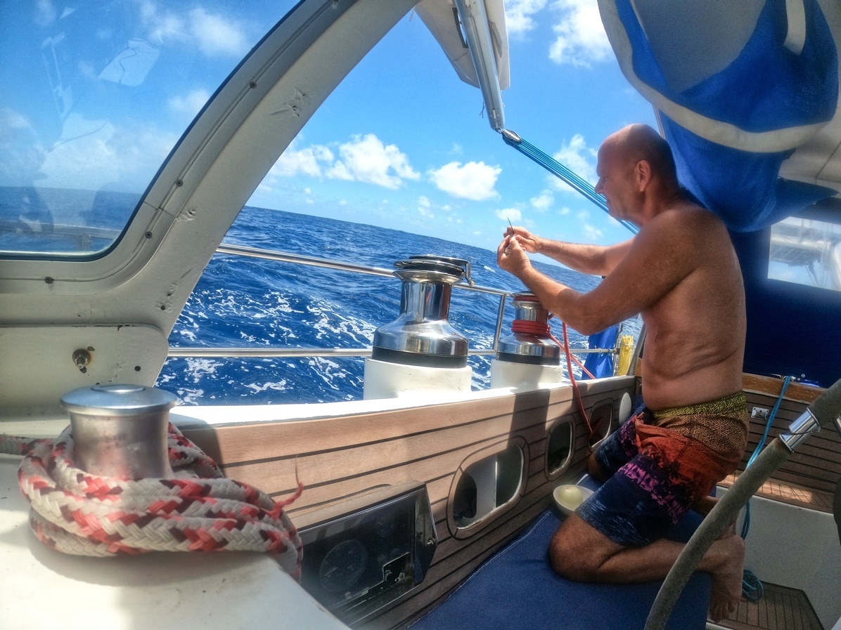 2. dubna vyplouvám z Cabo San Lucas v Mexiku a mám před sebou Pacifický oceán v délce asi 2600 mil. První 3 dny mám ideální lehký vítr z boku, který se pak točí na zadní, který je nepříjemný kvůli houpání lodě. Ale stále postupuji rychle kupředu. Nad rovníkem je velká konvergační zóna s častými dešti a malým nebo žádným větrem. Tady musím 3 dny motorovat směrem k rovníku. Ten překročím 17. dubna a pak již mě čeká suprový předoboční vítr až na Markézy. Celkem jsem za 19 dnů uplul 2800 mil a byla to zatím moje nejdelší sólová přeplavba oceánu. Děkuji Neptune za tvojí přízeň.