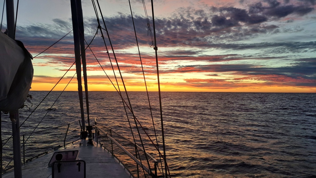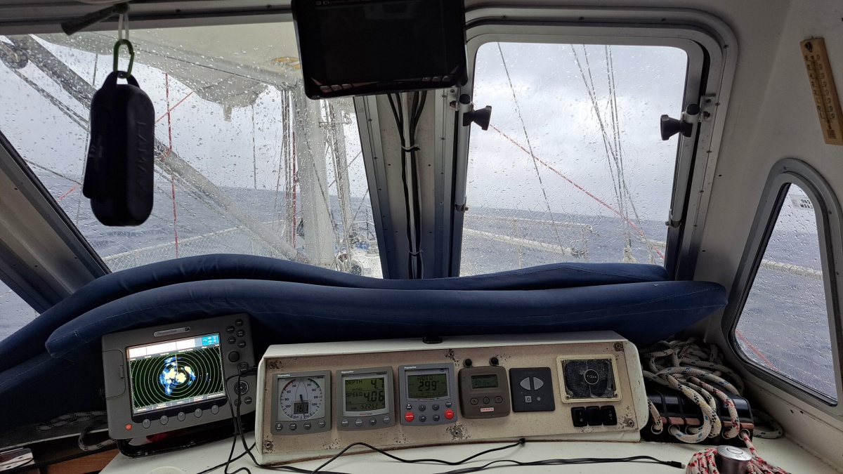 Opět vyplouváme směrem na západ. První den je silný zadní vítr, takže musím křížovat, kvůli velkým vlnám. Další den vítr slábne a s ním i vlny. Třetí den přijde silná bouře přímo do přídě. Stálý vítr 30 kn a poryvy 40 kn. Na motor se snažím držet na kurzu a překonávat 4 metrové vlny. Po 3 hodinách vítr slábne a konečně jsme z toho venku.
