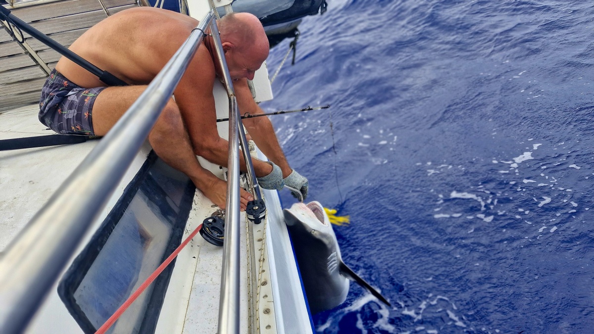 Další 4 dny trvala plavba na Americkou Samou. Poprvé jsem také chytil žraloka, kterého jsem samozřejmě pustil. Samoa nás přivítala deštěm a bouřkou. Ale bezpečně jsme zakotvili a mohli si prohlédnout další krásný ostrov. Je to přidružené zámořské území USA, ale obyvatelé nejsou občany USA. Mluví se zde anglicky a samojsky a měna je US dolar.