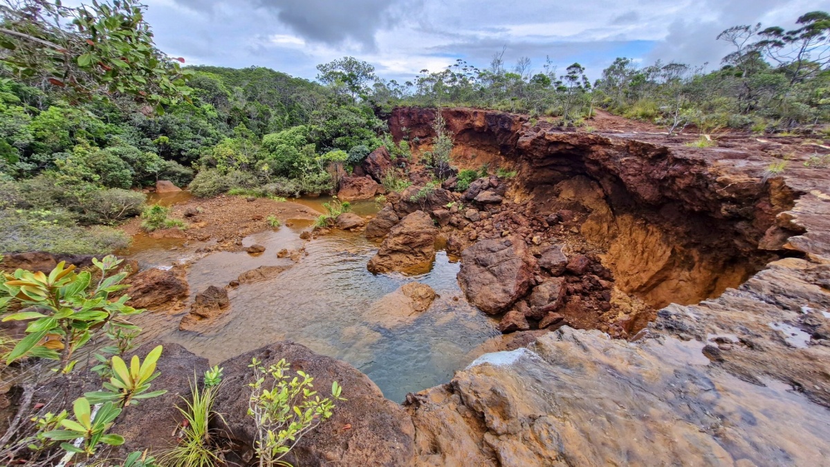 Nová Kaledonie sice leží v tropickém pásu Pacifiku, ale na první pohled vypadá úplně jinak, než ostatní ostrovy. Půda je červeno hnědá, protože obsahuje veliké množství rudy a těží se zde ve velkém nikl. To má za důsledek, že příroda je zde absolutně jiná. Svahy jsou porostlé nízkými keři a občas z nich vyčnívají borovice. V některých místech to vypadá jako někde ve středomoří a kokosové palmy jsou jenom zcela vyjímečně u pláží.