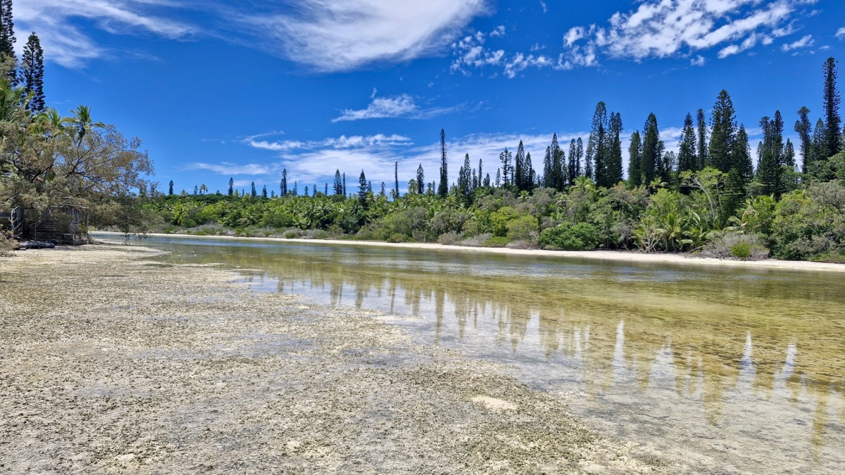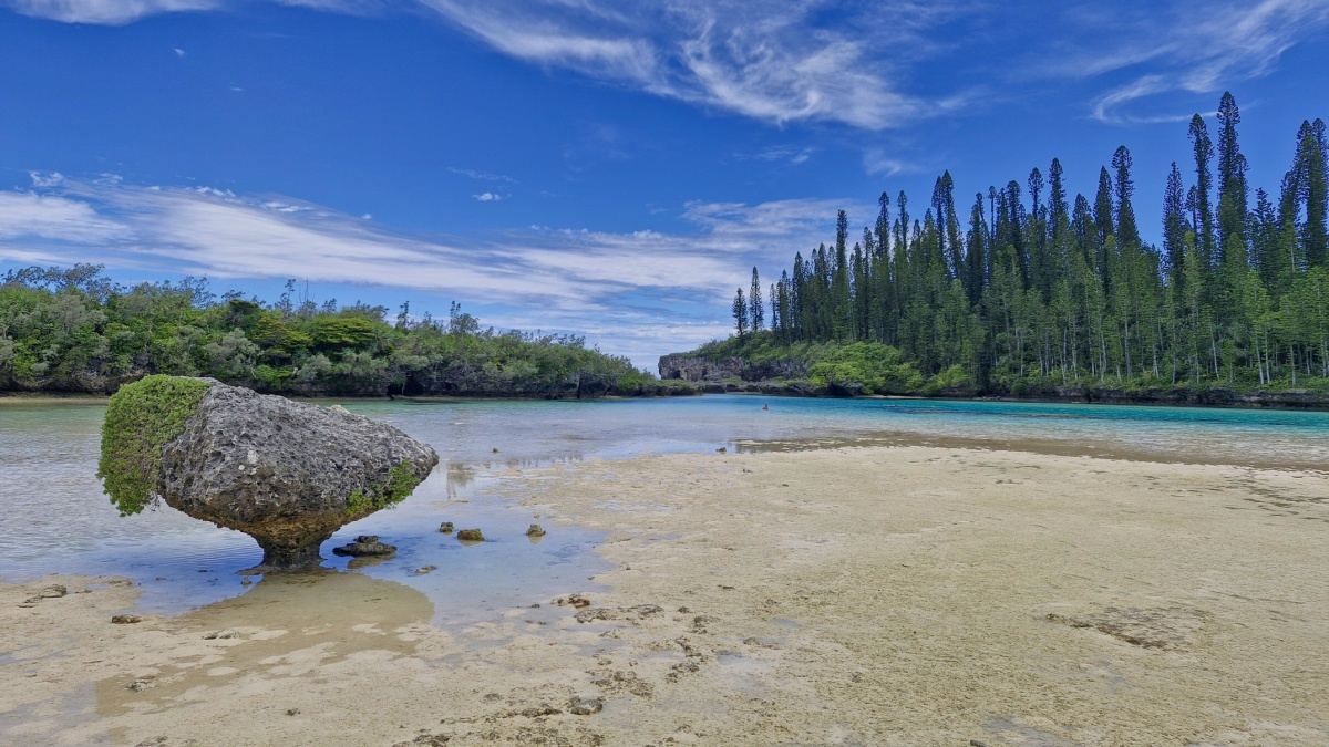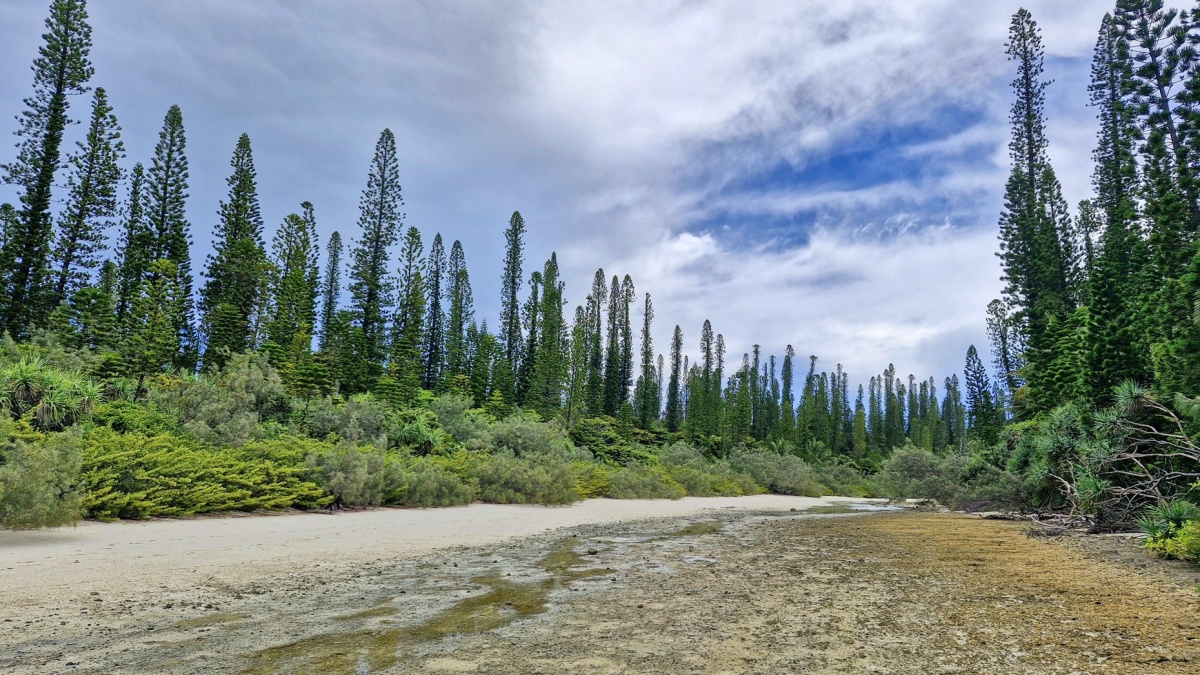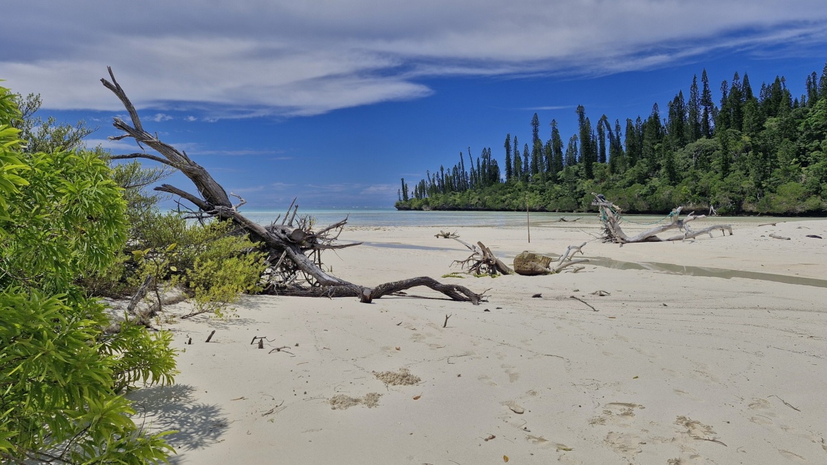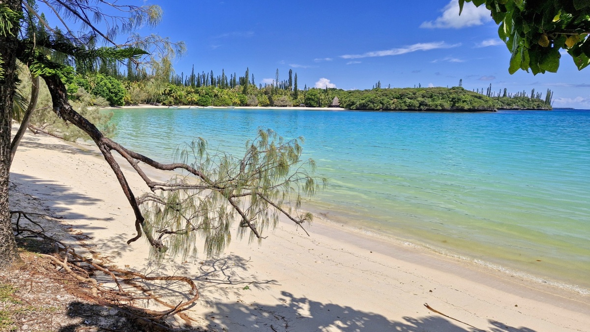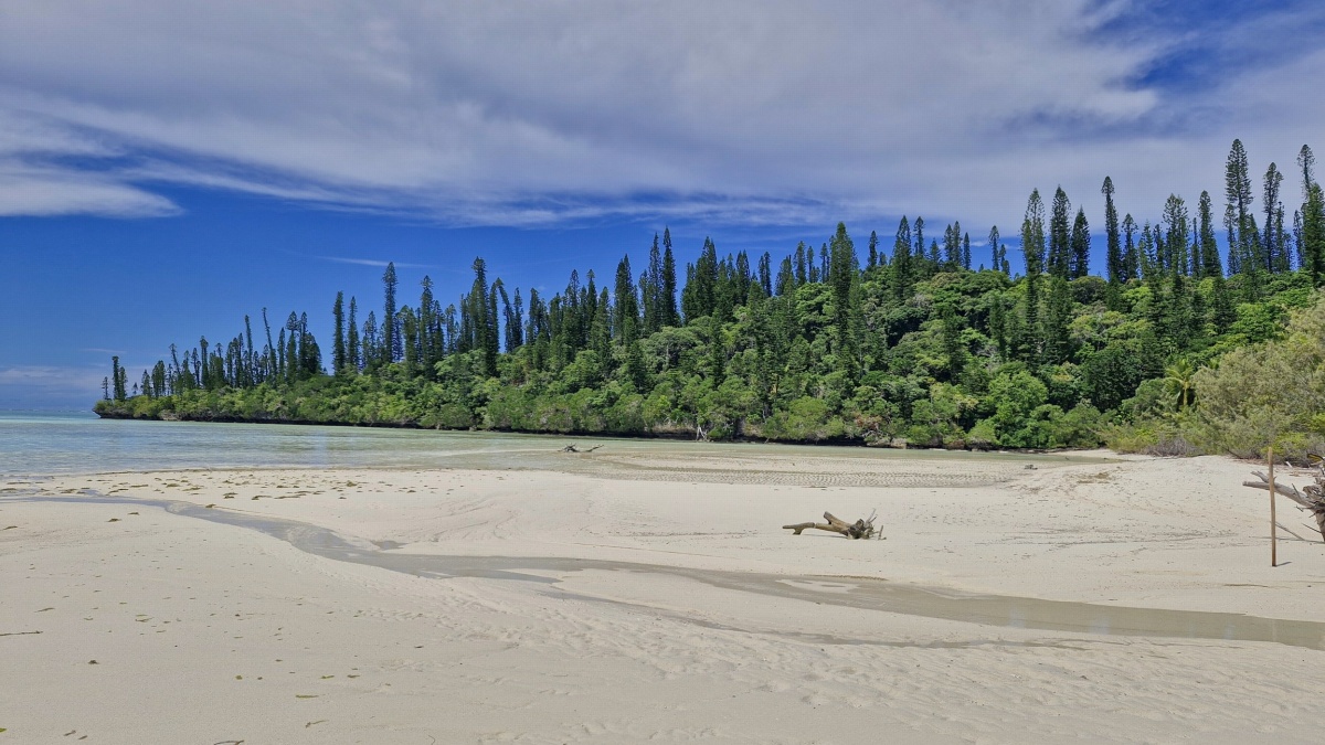 Ile des Pins je v překladu ostrov borovic. Skutečně je jich zde mnoho a občas si připadáme jako u nás v lese. Nejdříve si vyšlápneme na kopec s krásným výhledem a druhý den objedeme celý ostrov na kolech